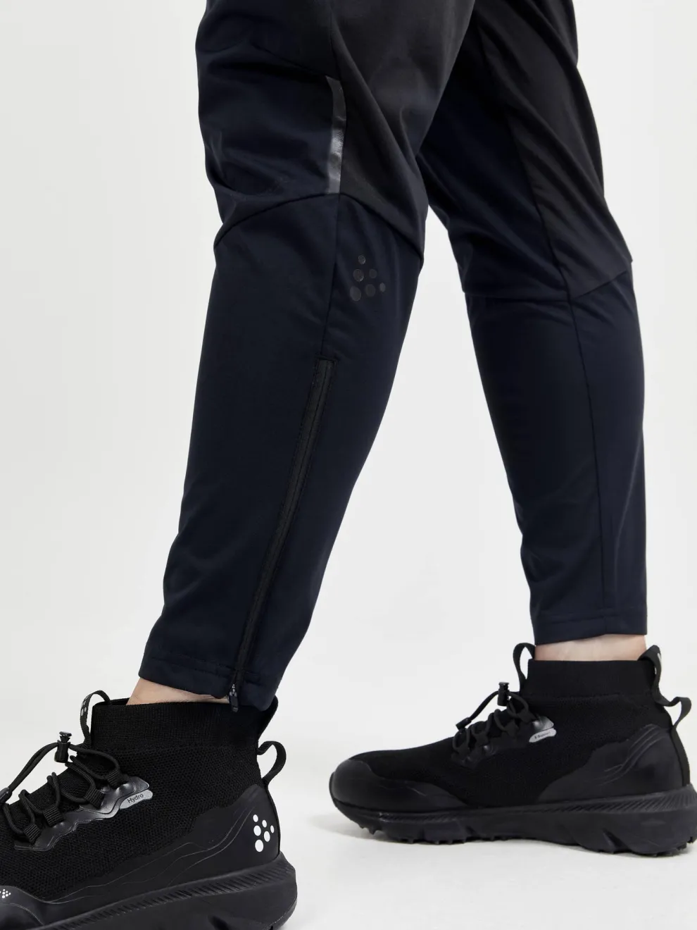 Understated style and optimal comfort combine in our PRO Hydro Pants. Crafted for difficult weather these pro-grade running pants utilize triple layer Ventair fabric for exceptional wind and water proofing at the front with elastic jersey at the back for optimal moisture transport. Reflective details, a wide jersey waistband, and zip closures at the legs all add to the awesomeness of this essential piece of your pro-level running gear.